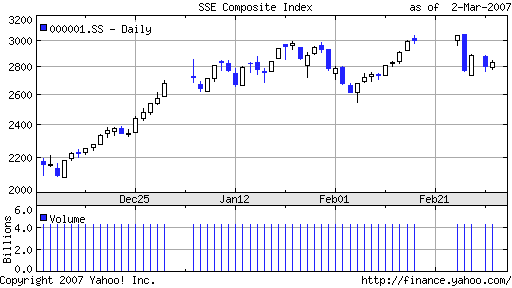 今回の大幅下落の発端は2月27日に上海株が軒並み売られたことに起因しています。